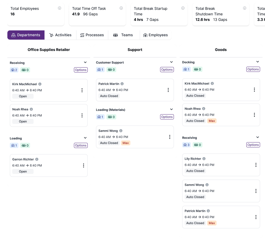 Returns and reverse logistics operations are complex, labor-intensive, and margin-sensitive. Takt provides real-time labor management, engineered labor standards, and structured tracking for inspection, dispositioning, recommerce, and light refurbishment—helping warehouses reduce cost per return and improve recovery value.